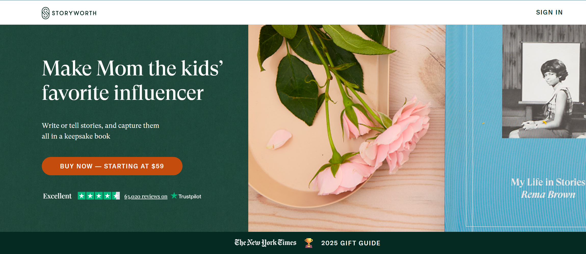 StoryWorth sends one question per week to a family member, they write their answer (text only — no voice), and at the end of the year, everything gets compiled into a hardcover book. It's been around for years and has strong brand recognition.